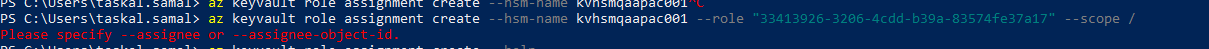 Please execute Azure CLI command - 'az keyvault role assignment create --hsm-name --role "" --scope /'