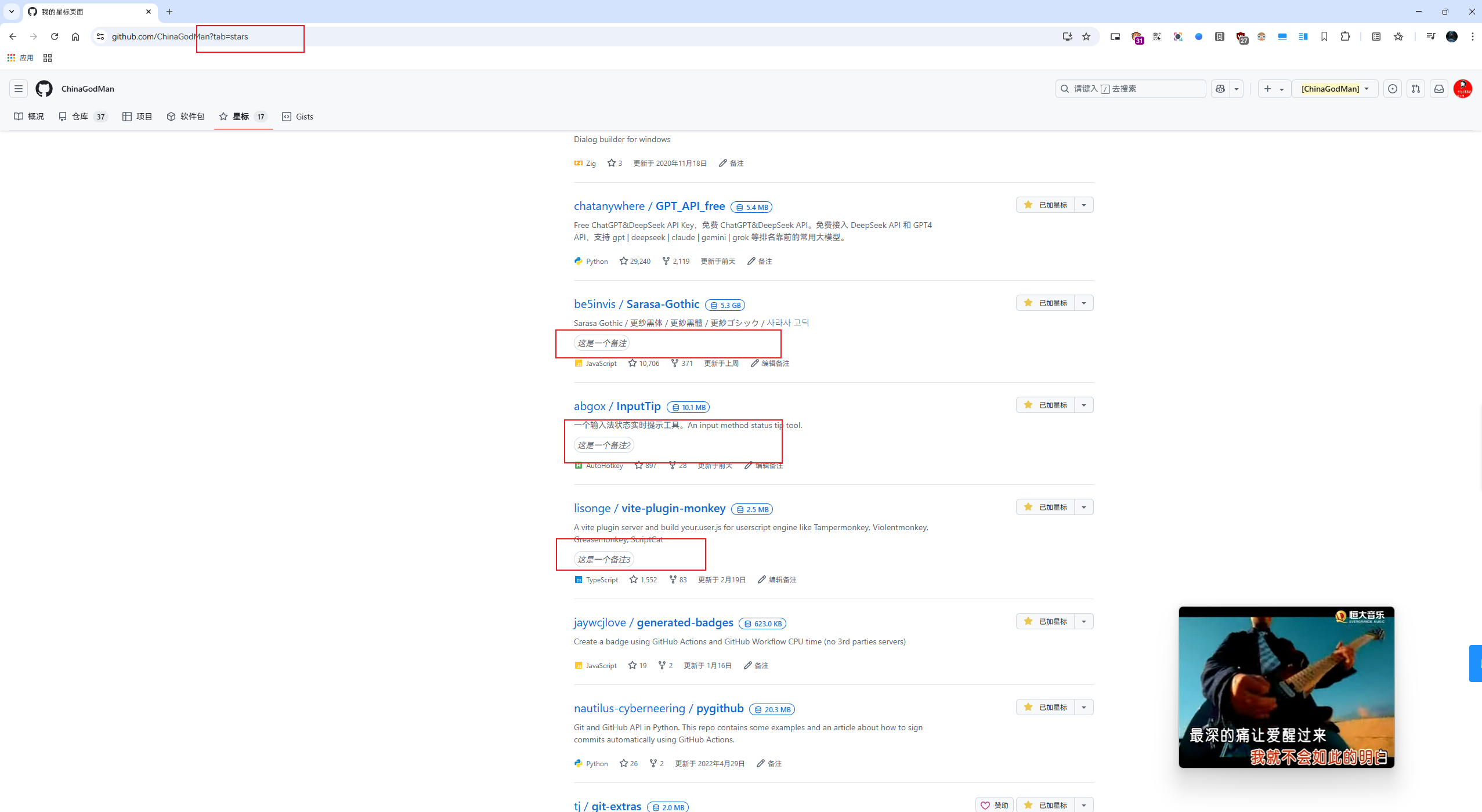 「 曾经 Star 过的仓库是不是忘记了它们的用途? 这是一个可以给你收藏过的仓库添加备注的的脚本,并且你备注的信息可以上传下载到 GitHub Gist 」