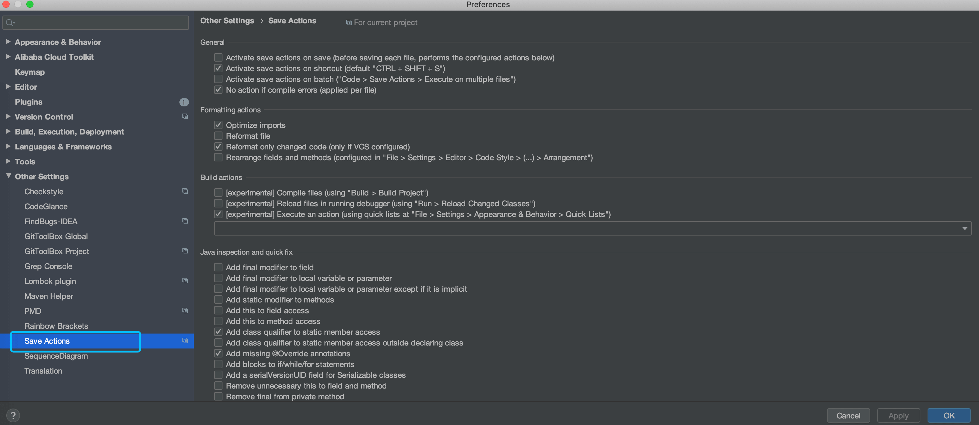 目前这个插件实现了开发手册中的的 53 条规则,大部分基于 PMD 实现,其中有 4 条规则基于 IDEA 实现,并且基于 IDEA Inspection (opens new window)实现了实时检测功能。部分规则实现了 Quick Fix 功能,对于可以提供 Quick Fix 但没有提供的,我们会尽快实现,也欢迎有兴趣的同学加入进来一起努力。 目前插件检测有两种模式: 实时检测、手动触发。