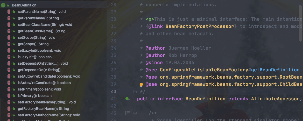 public interface BeanDefinition extends AttributeAccessor, BeanMetadataElement {
