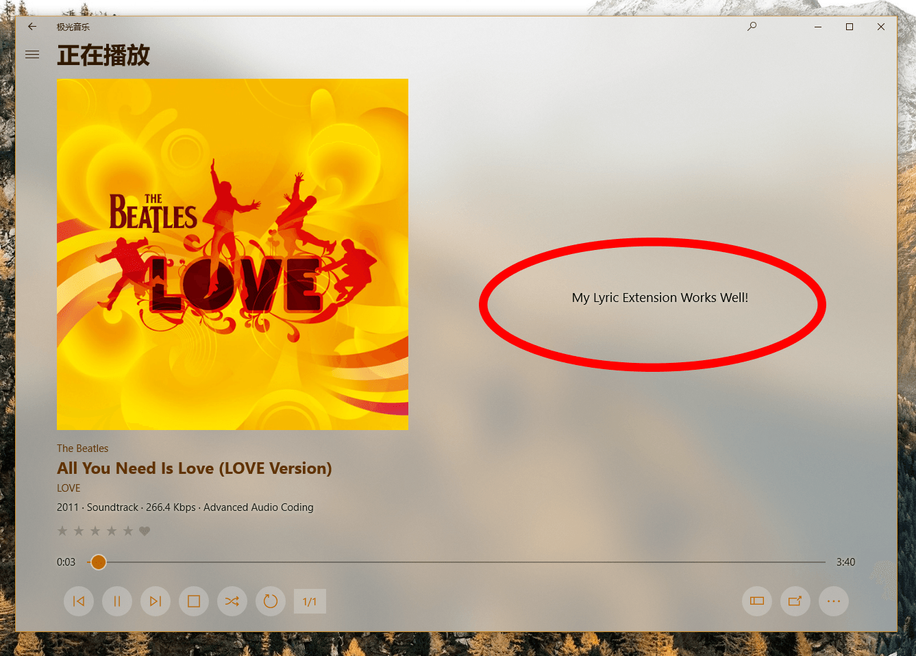 Then choose any song to play, go to Now Playing, you can find it works well: