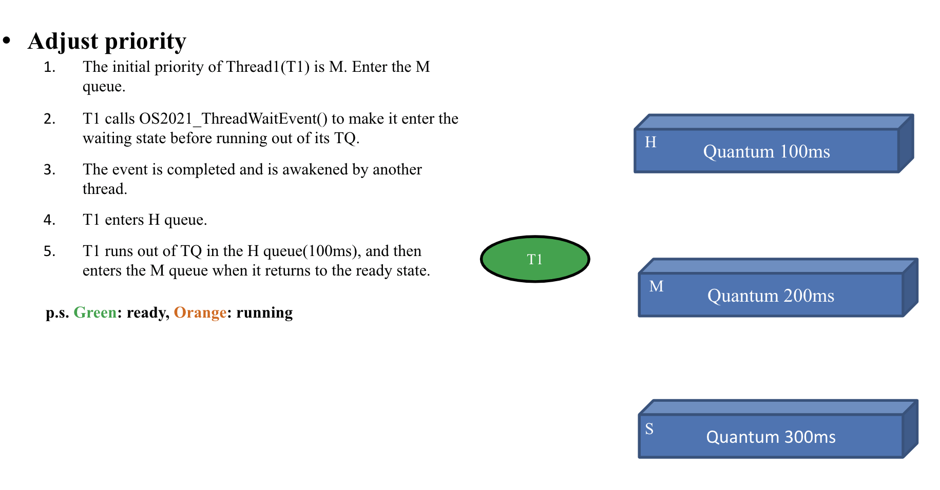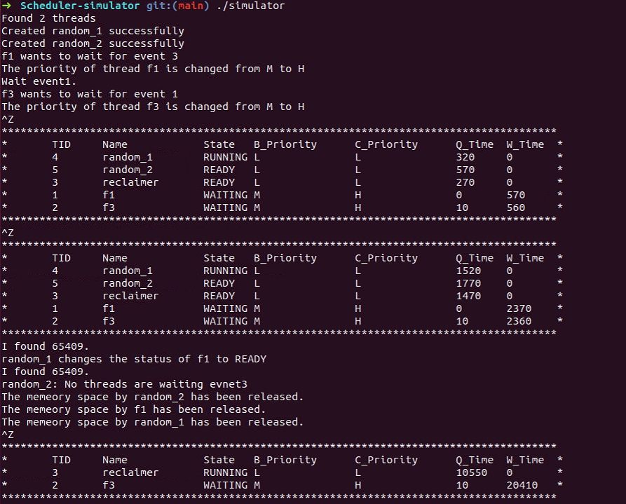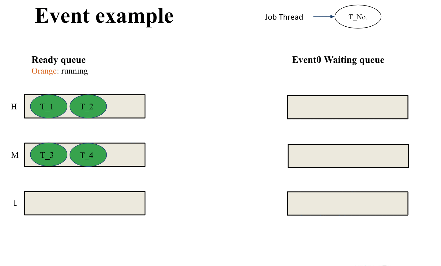 - If there is currently a thread waiting for an event, the API will move the state of the thread from WAITING to READY and remove the thread from the event waiting queue corresponding to the event_id and put it in the ready queue.