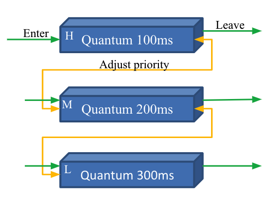 - H – Round Robin(RR) with Time Quantum(TQ) 100ms