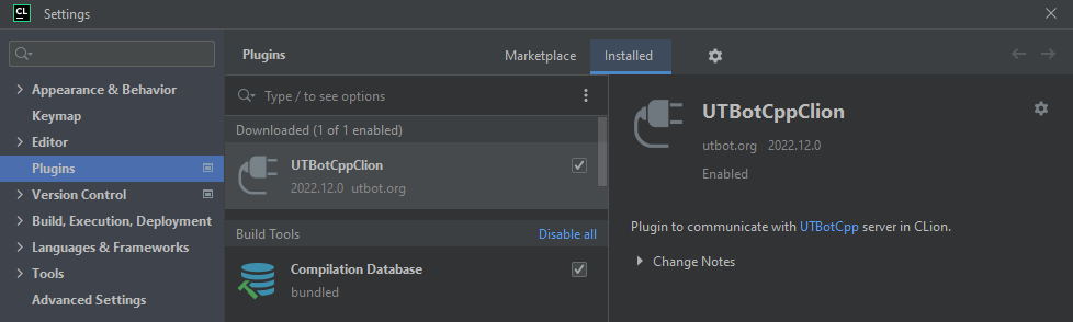 To check if the plugin is enabled, go to File > Settings > Plugins and choose Installed.