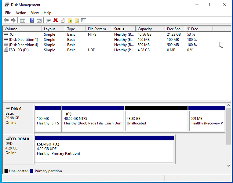 diskmgand clicking on theCreate and format hard disk partitions. - Configure your Windows partition to how much you want it to be. DO NOT DELETE THE RECOVERY OR EFI SYSTEM PARTITION. Right click on the windows partition and click shrink partition and shrink it to the amount you want for your arch linux partition.