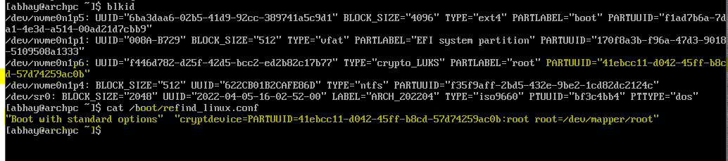 refind-install - Now, we need to make sure refind actually works and boots up linux because right now, it is configured based on the arch iso and the flash drive. This is a simple task to do. I will be doing the following in nano because that is easiest for me but you can do it in vim as well.