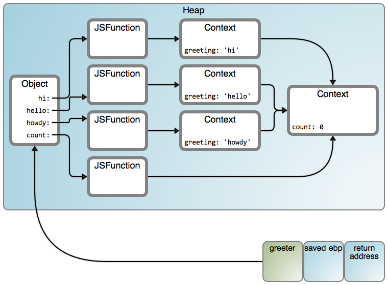 const counter = outer();outer()invokedcountcreated in lexical environmentinnerreturned- Call stack frame of