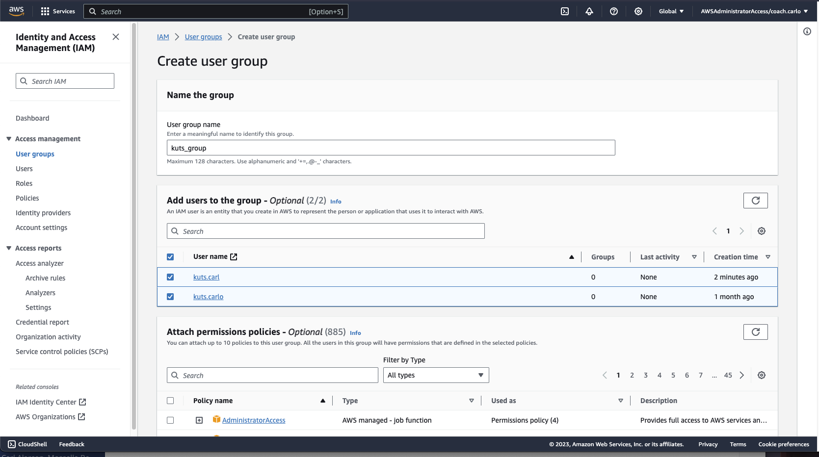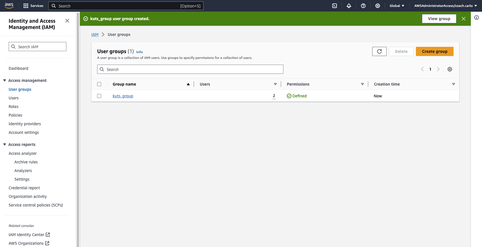 In this lab, we are going to create an IAM user group and attach permission to it.