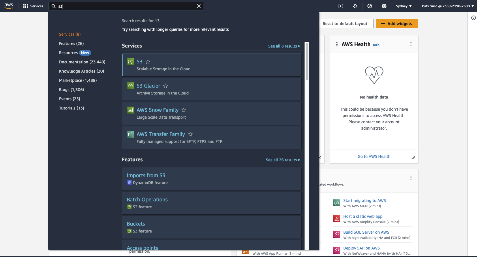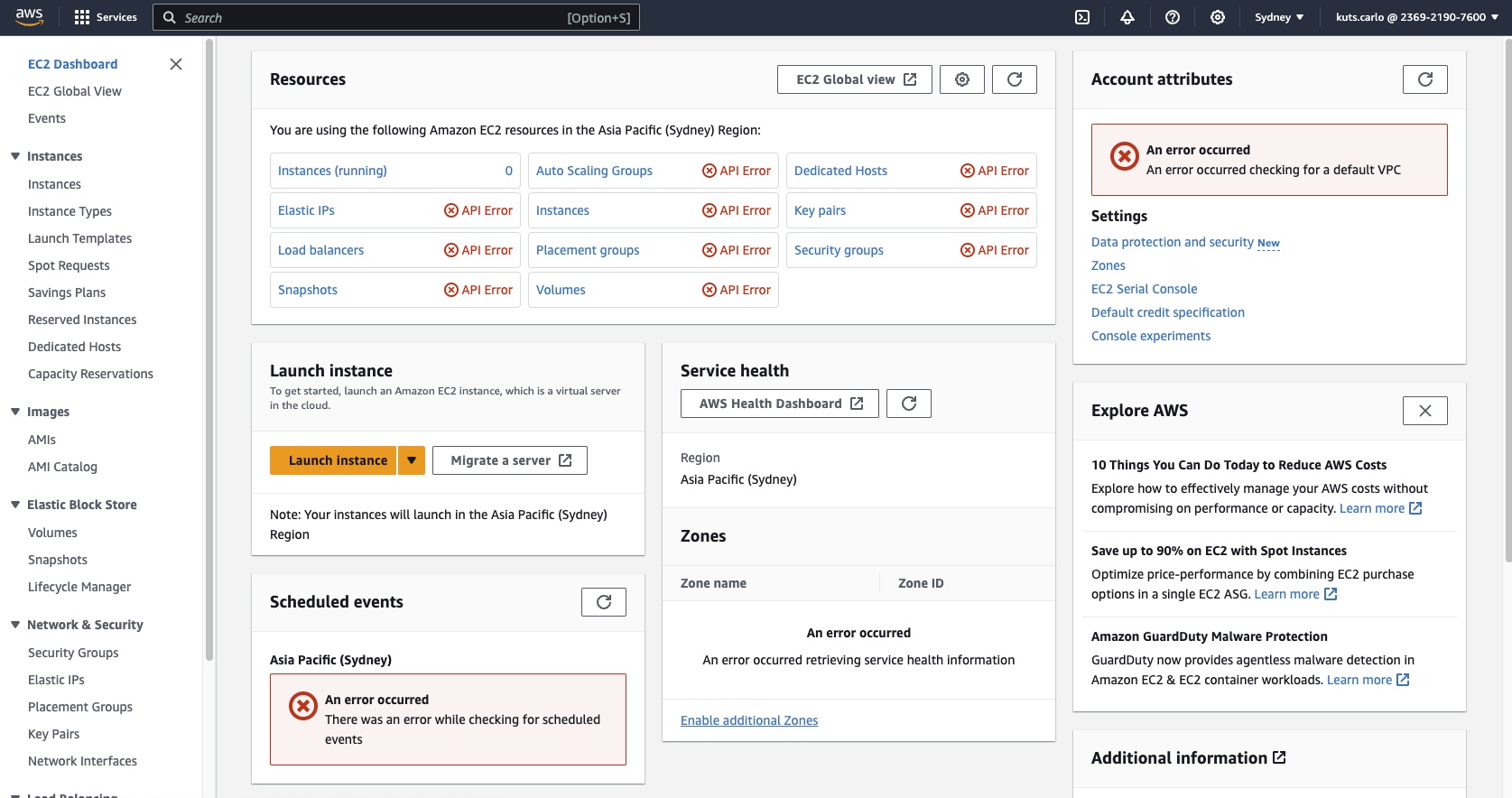 2-f To test if we can only access S3, try to access Amazon EC2.