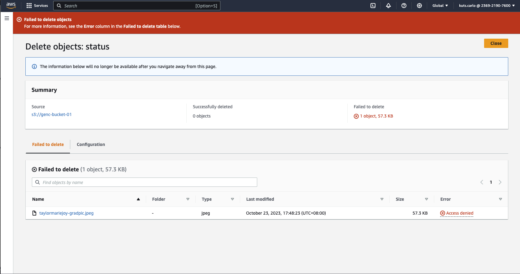 2-e You should get the same result since we also assigned AmazonS3ReadOnlyAccess on the group.