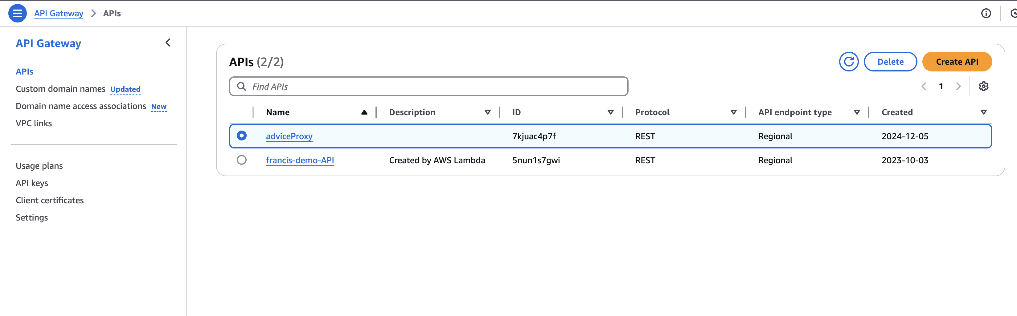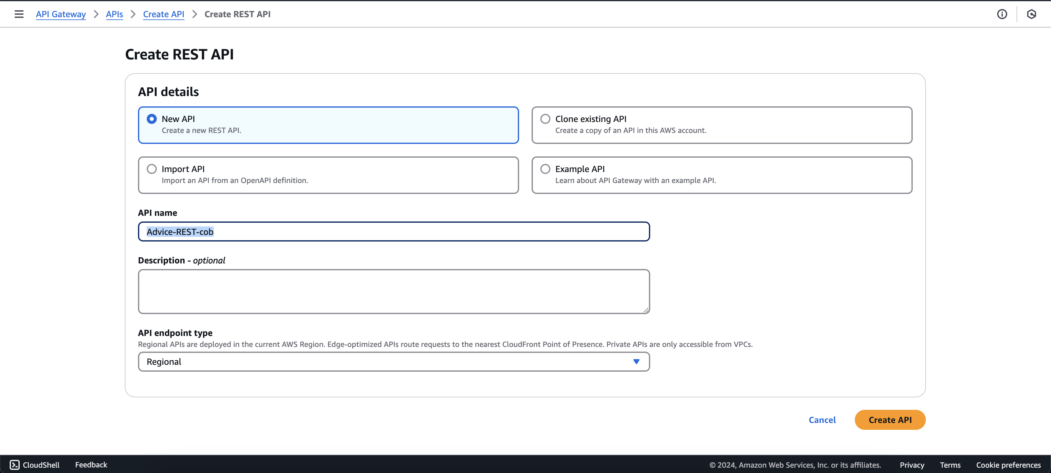 - Click Create API.