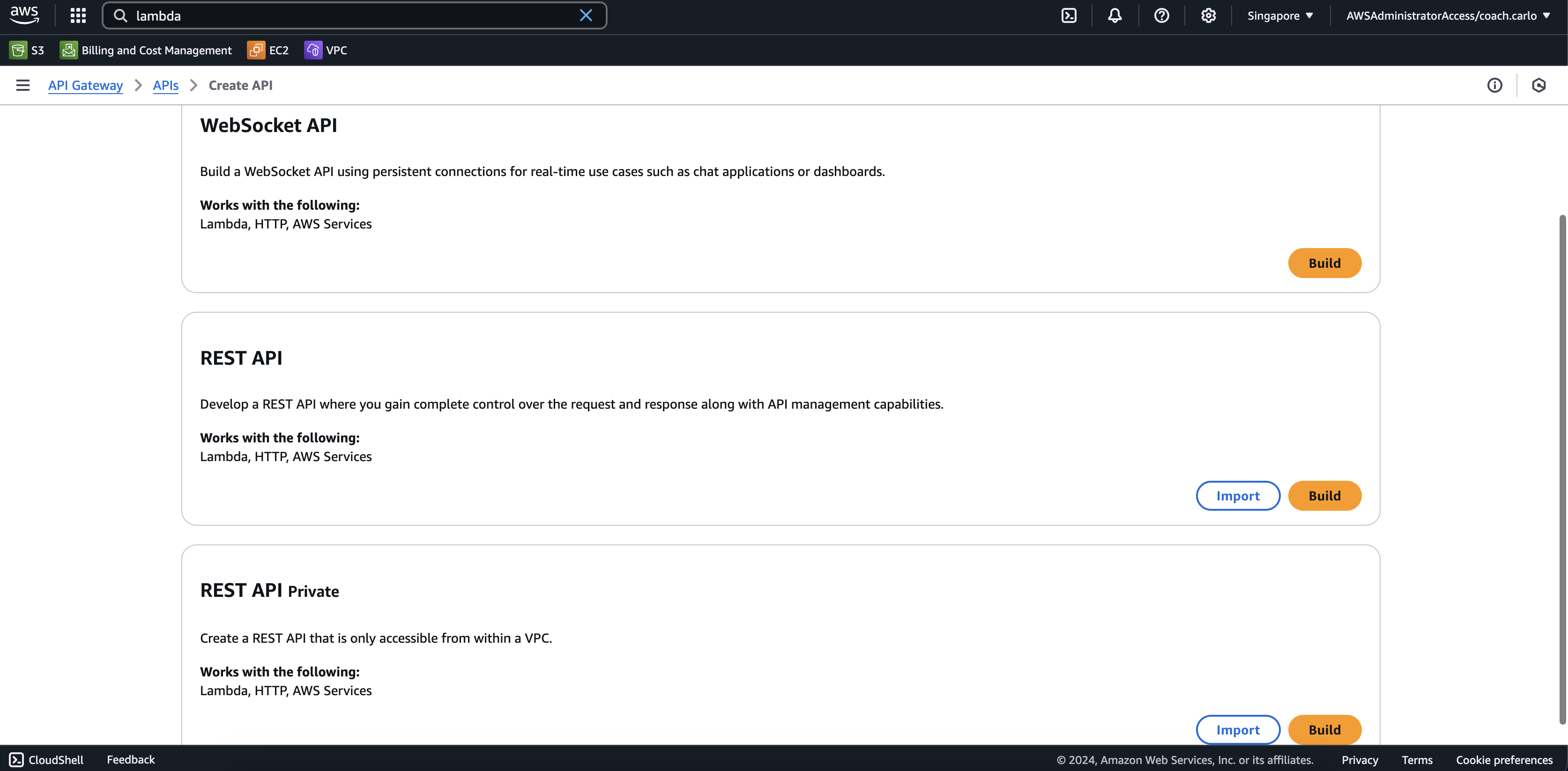 Select Create API > REST API > Build.