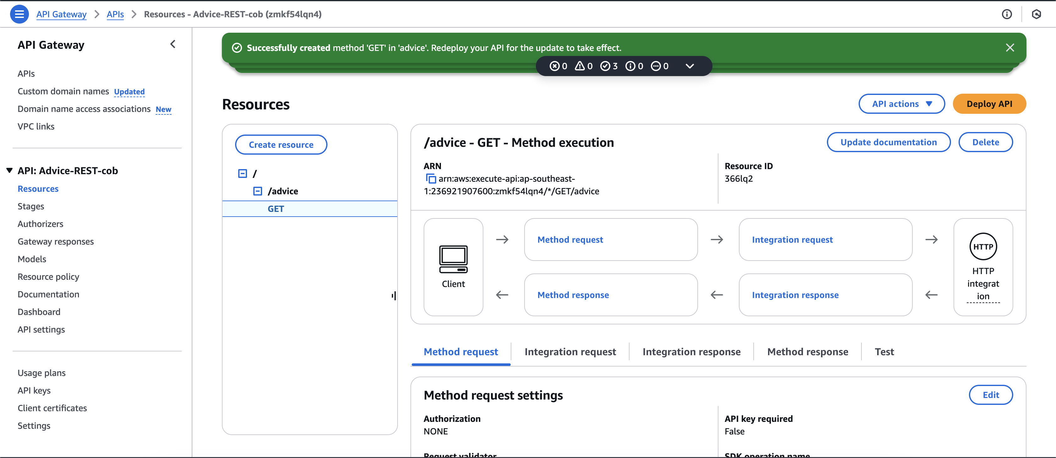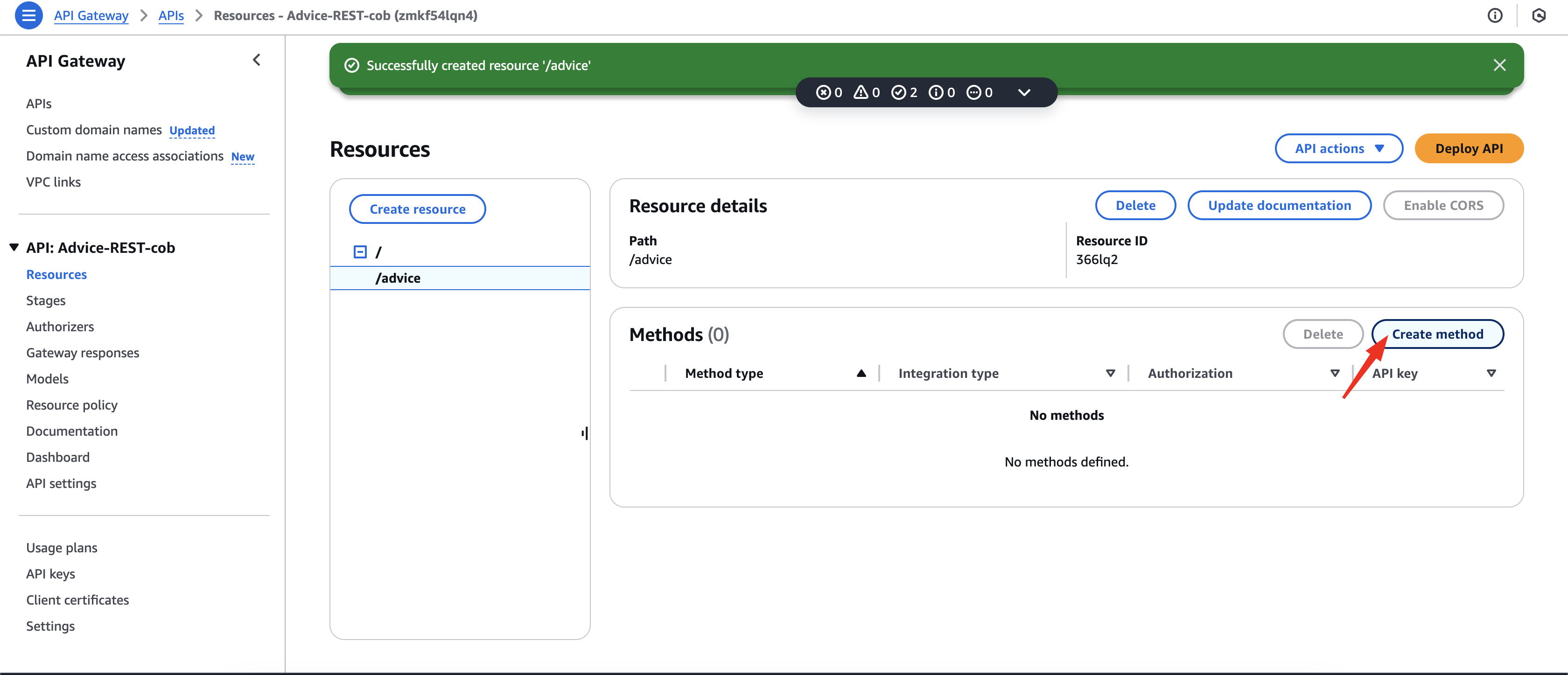 - Select the /advice resource.