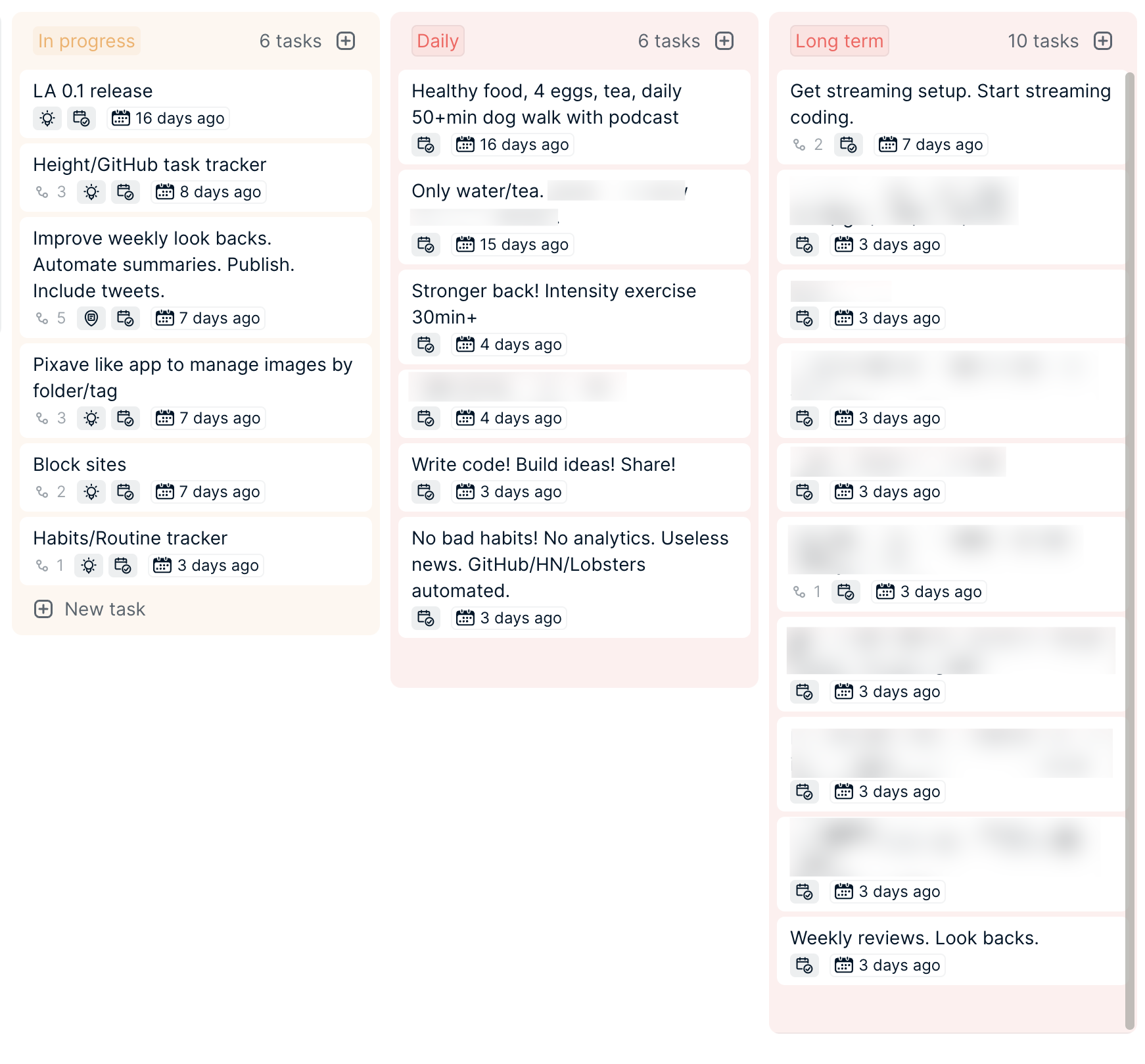 Previously I tried Notion but it lacks ability to track progress on tasks/ideas.