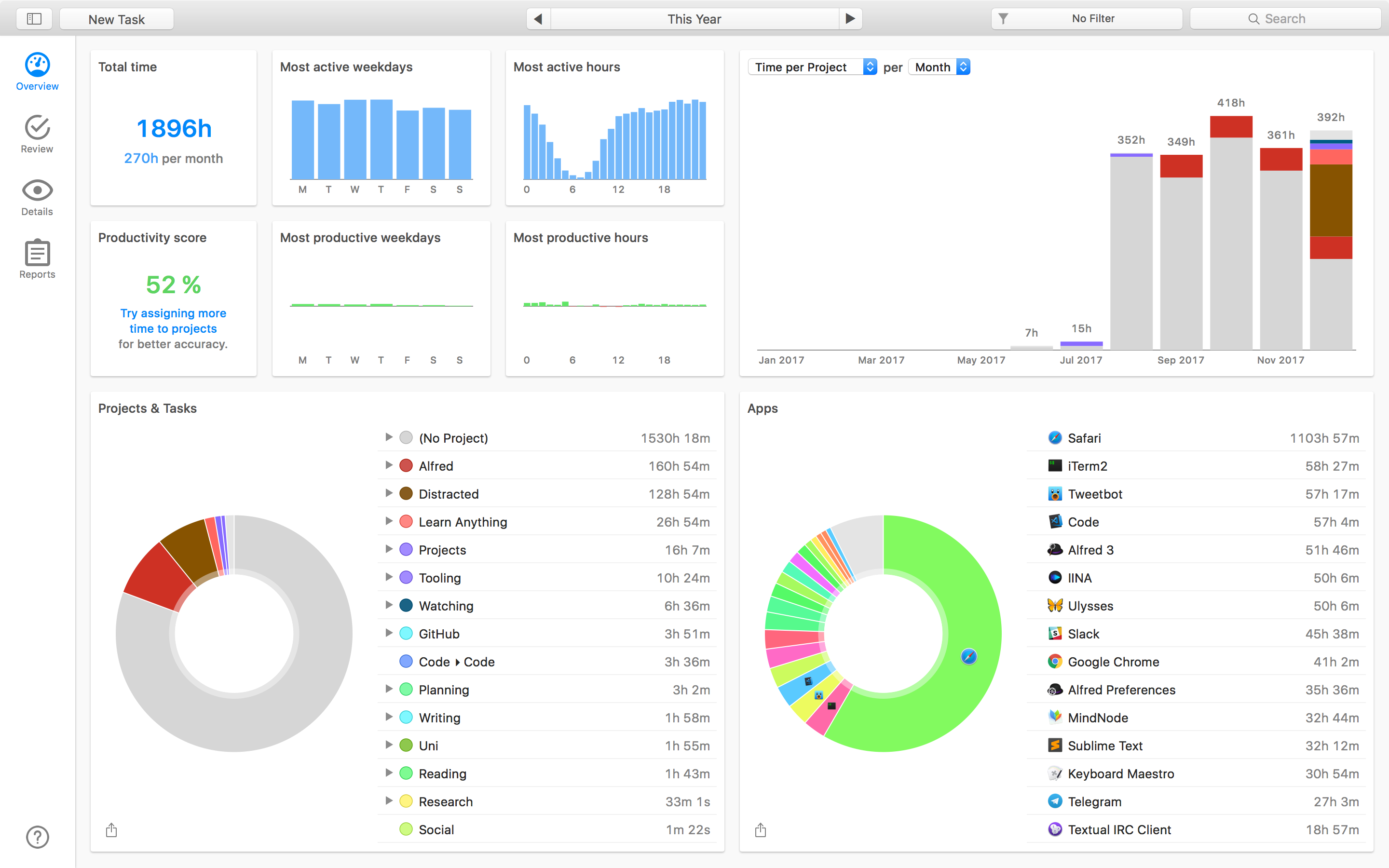And I started doing Evaluation of my life weekly instead of daily. I also started using many tools to help automate this evaluation phase for me. Most importantly I started to heavily use Timing and WakaTime to stay on top of things I actually am doing over what I think I am doing.