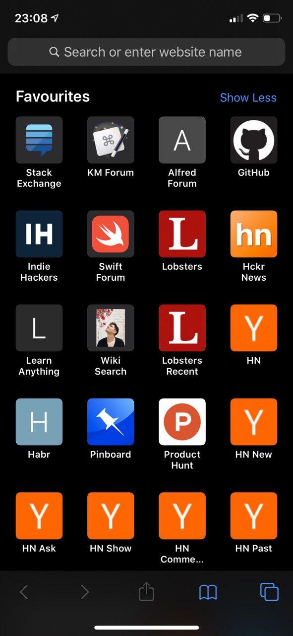 Here are websites I have in my Favorites which are usually sites I want super fast access to from iOS Safari:
