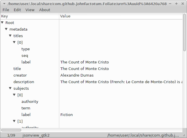 jsonview_gtk2 Very primitive JSON Viewer. Compatibility doublecmd-gtk2 Dependencies pacman -S json-glib
