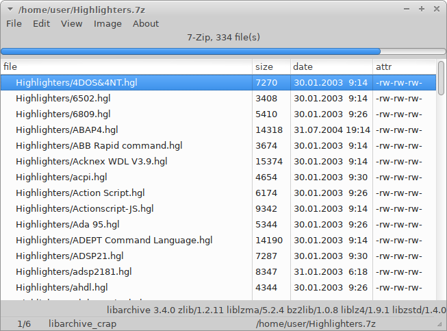 libarchive_crap Displays file content with libarchive (supported formats). Compatibility doublecmd-gtk2 doublecmd-gtk3 Notes Requires libarchive library. Dependencies pacman -S libarchive enca