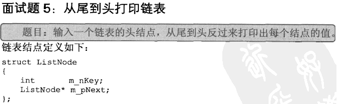 第一个遍历到的结点最后一个输出,而最后一个遍历到的结点第一个输出。这就是典型的“后进先出”,我们可以用栈实现这种顺序。每经过一个结点的时候,把该结点放到一个栈中。当遍历完整个链表后,再从栈顶开始逐个输出节点的值,此时输出的结点的顺序已经反转过来了。这种思路的实现代码如下: