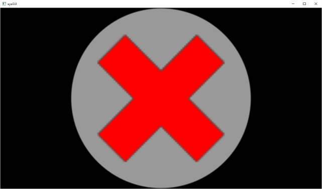 </layout>The program should compile if linked correctly and display a circular, window filling button with a red cross as icon.
