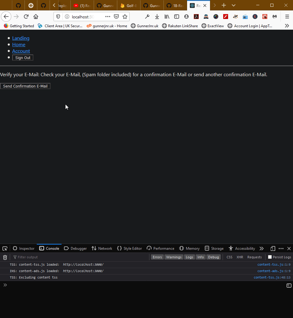 REACT_APP_GOLF_BUDDIES_DEV_CONFIRMATION_EMAIL_REDIRECT=http://localhost:3000also in firebase.js I have set the url like so to use localhost..