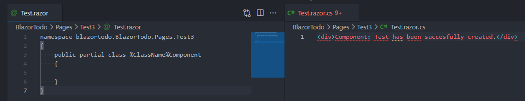When I create a new "Blazor Component" in a folder, the generated files look like the following: