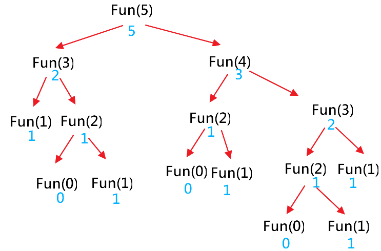 return normal_recursion(n - 1) + normal_recursion(n - 2)其實很好理解,請看下方的圖,