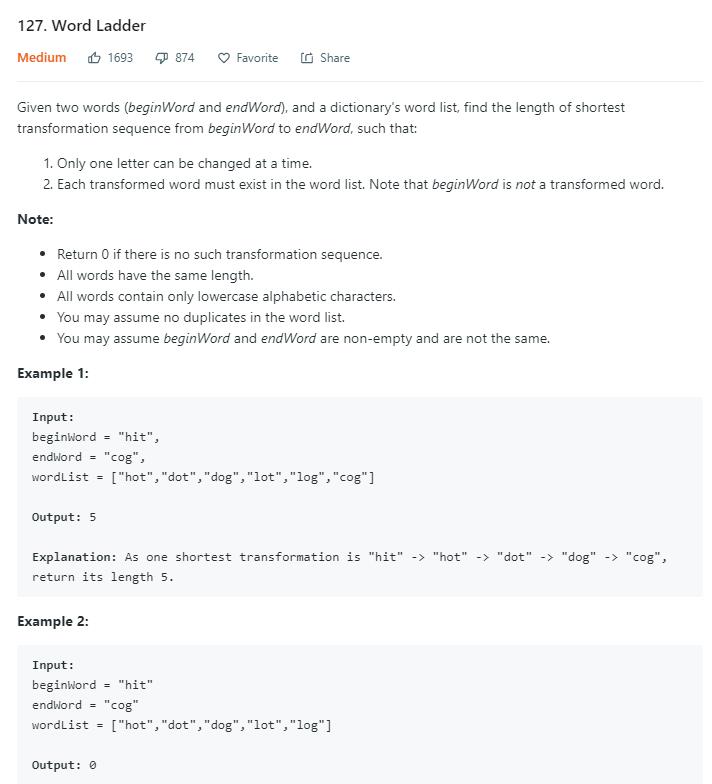 }2020.6.22 更新,感谢 @cicada 指出,leetcode 增加了 case ,上边的代码不能 AC 了,我们需要考虑从第一个单词无法转到最后一个单词的情况,所以 return 前需要判断下。
