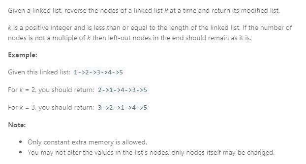 public ListNode reverseKGroup(ListNode head, int k) {