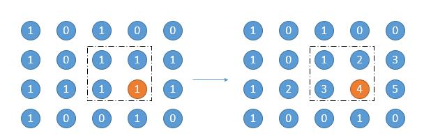 按照上边的方法,遍历所有的点,以当前点为矩阵的右下角,求出所有的矩阵就可以了。下图是某一个点的过程。