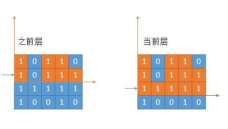 如下图,如果当前新增的层全部是 1,当然这时最完美的情况,那么 leftLessMin [ ] 根本不需要改变。