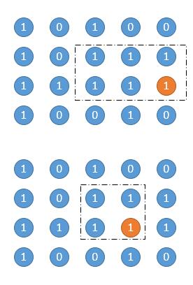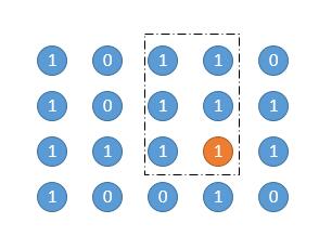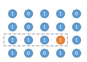 怎么找出这样的矩阵呢?如下图,如果我们知道了以这个点结尾的连续 1 的个数的话,问题就变得简单了。