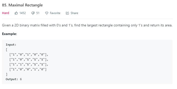 给一个只有 0 和 1 的矩阵,输出一个最大的矩形的面积,这个矩形里边只含有 1。